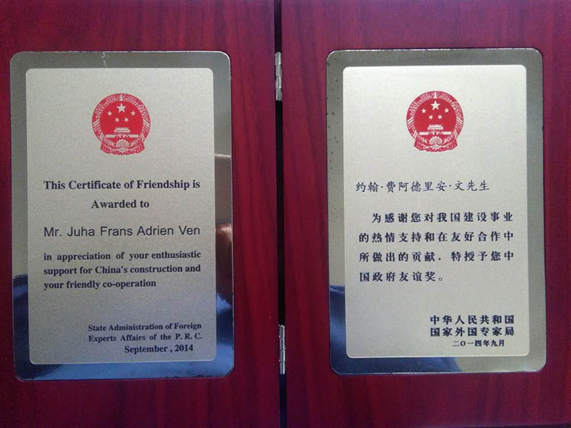 2014年9月,公司董事長約翰.文獲中國政府“友誼獎”。